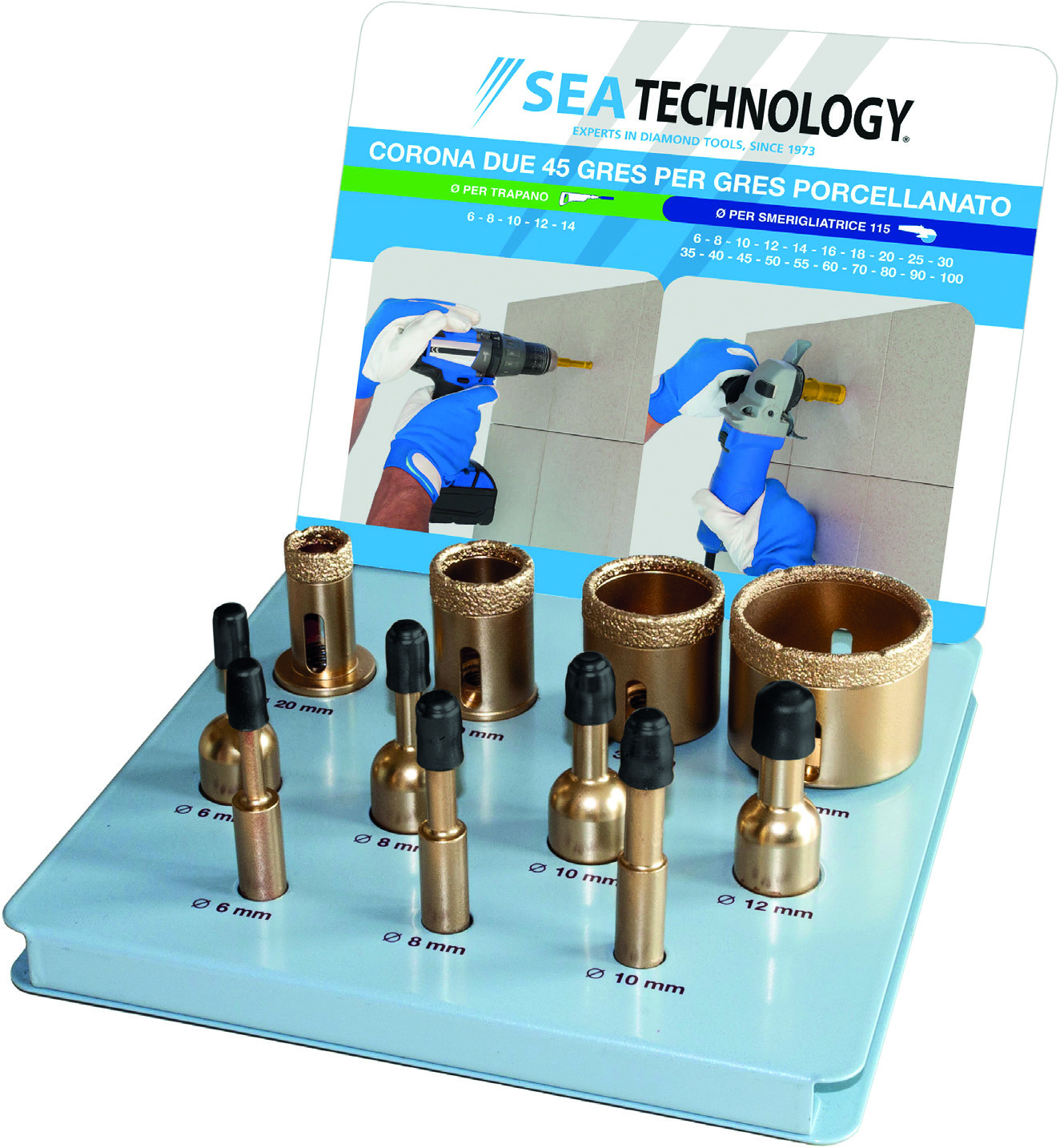 Il rivenditore può dunque definire il mix degli strumenti utilizzabili in base ai suoi obiettivi commerciali, alla metratura da destinare ai sistemi professionali per il taglio, il carotaggio e la levigatura, alle abitudini d’acquisto dei clienti. È inoltre possibile realizzare allestimenti completi con diversi espositori, un assortimento di macchine, accessori e altro materiale pubblicitario che aumenta l’impatto visivo dell’esposizione stessa.