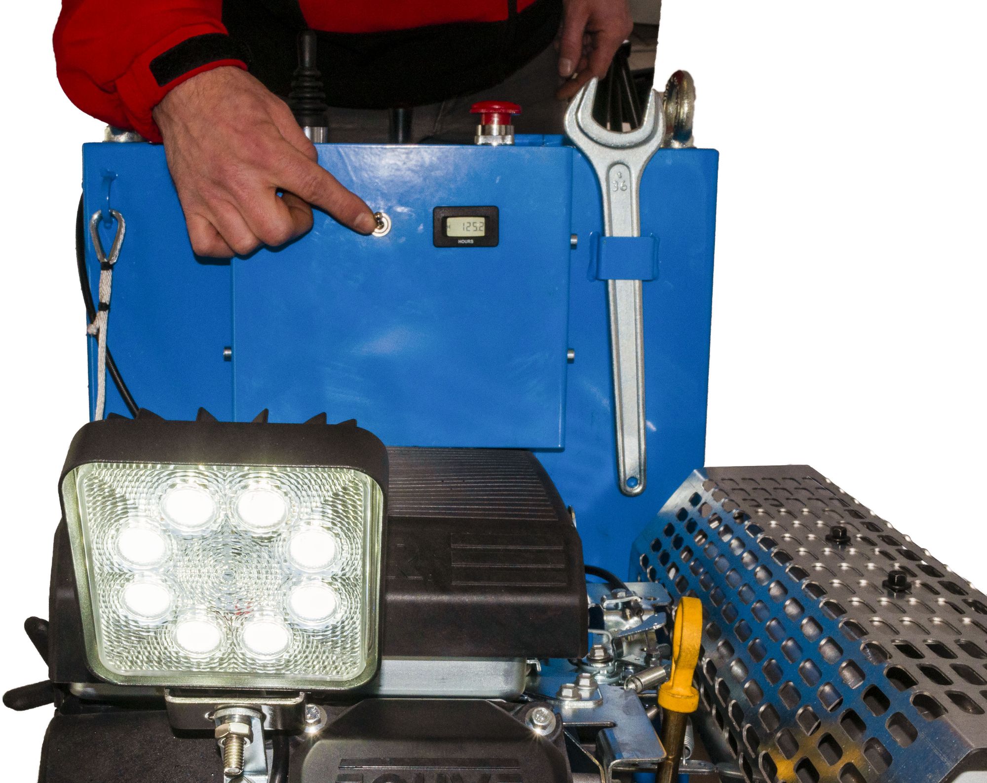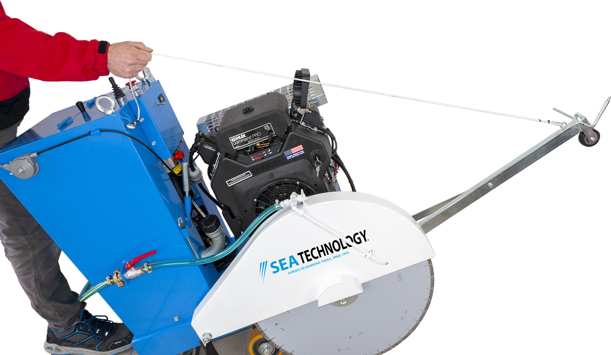 La macchina è dotata di sistema elettrico di discesa automatica del disco, faro Led per illuminare la zona del taglio, conta-ore per tenere sotto controllo lo stato della macchina e pianificarne la manutenzione. A seconda delle esigenze specifiche, è possibile sceglierla con alimentazione diesel o benzina.