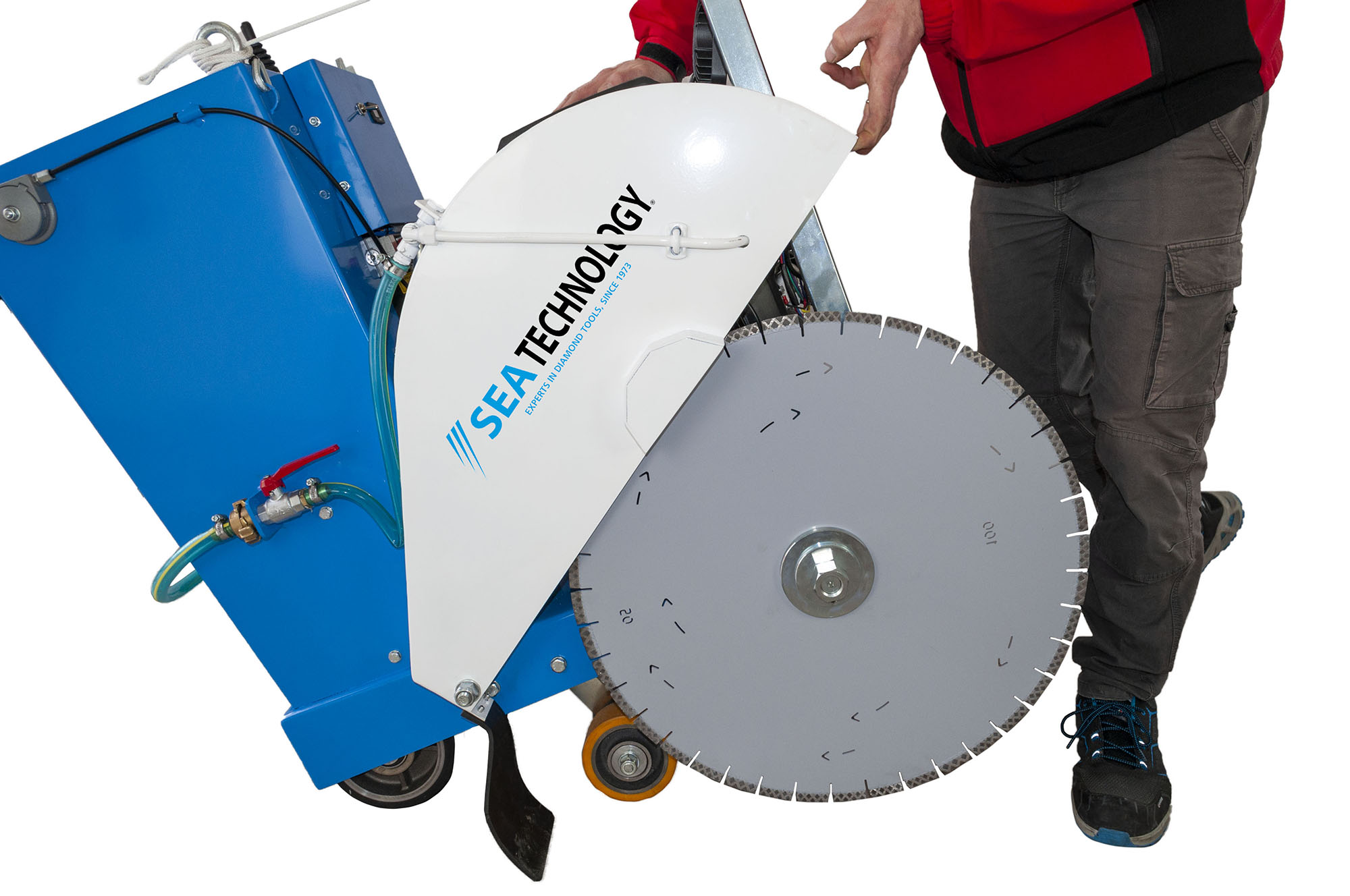 SEAFLOOR 600 è fornita di serie con il disco diamantato CEMENTO CINQUE SILENT. Può essere utilizzata anche con altri dischi specifici per il cemento oppure con il nuovo CEMAS, che grazie alla speciale composizione del segmento diamantato, consente di tagliare il cemento armato e l’asfalto, evitando così di dover utilizzare due dischi diversi.